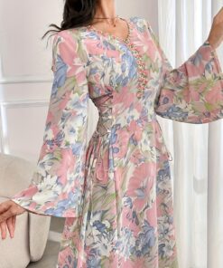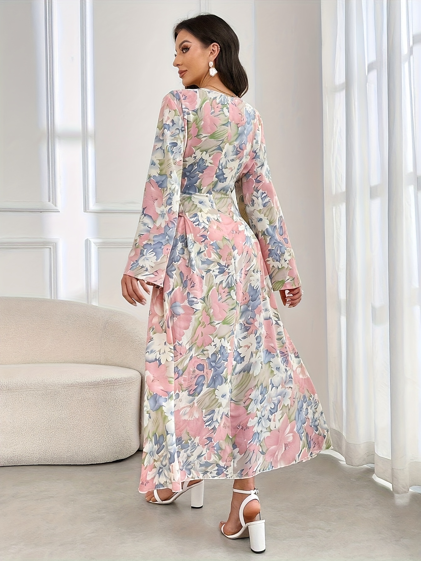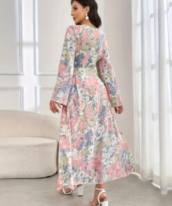 فستان ماكسي نسائي أنيق مزين بالزهور – فستان طويل رسمي وكاجوال بياقة على شكل حرف V، طقم حفلات زفاف فضفاض باللون الوردي/الأزرق/الأخضر/الأبيض، ملابس رسمية ومناسبة لجميع الفصول، فساتين لحفلات الزفاف، أزياء متعددة الاستخدامات، تصميم بياقة V، مقاس مريح