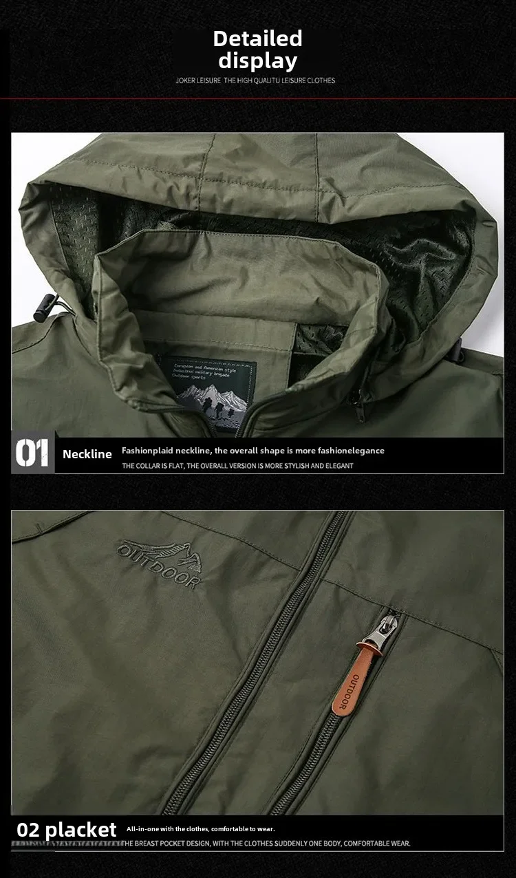 في الهواء الطلق الرجال سترة عسكرية 2025 جديد ربيع الخريف يندبروف مقاوم للماء ملابس العمل غير رسمية معطف مقنع الرجال سترات تسلق الجبال