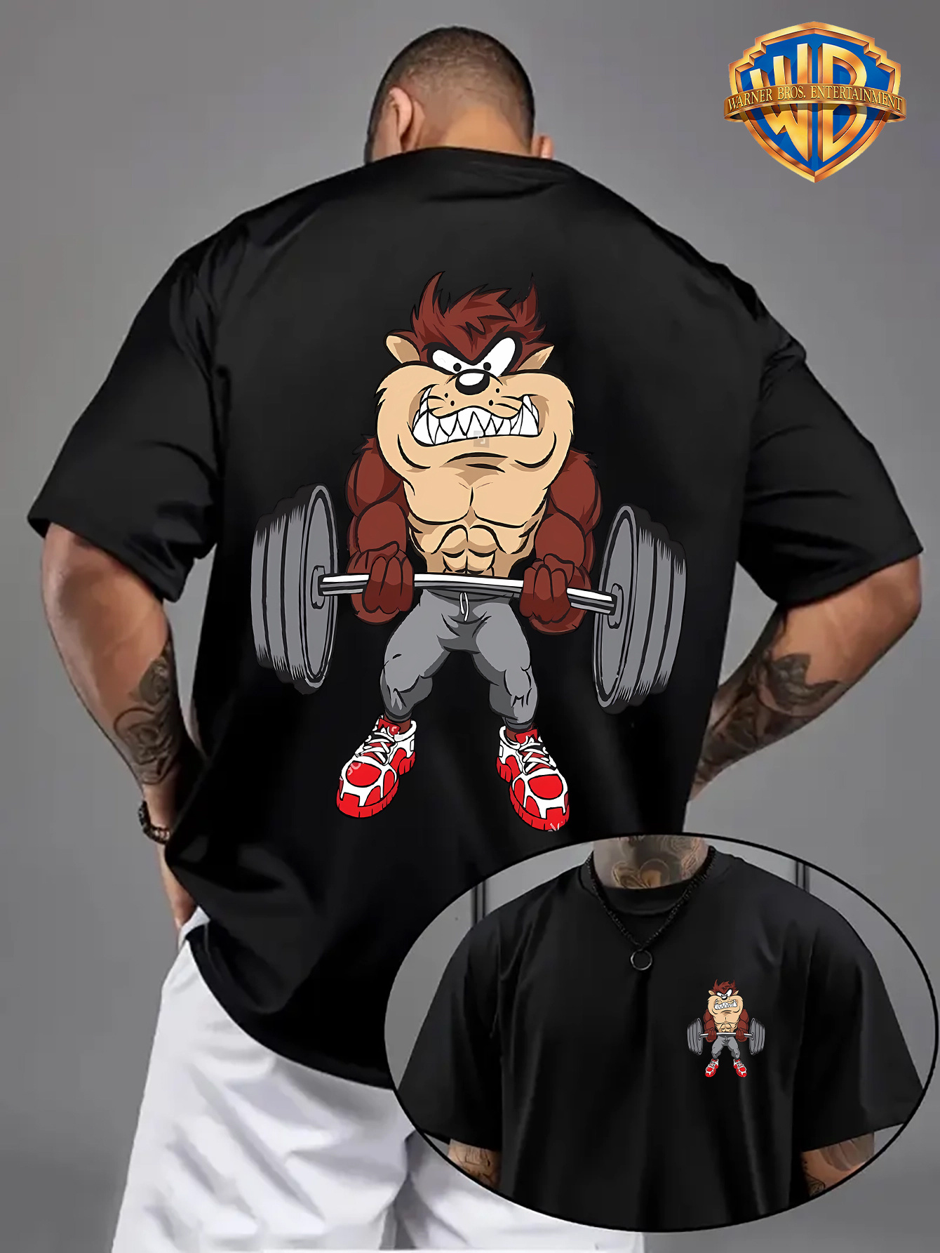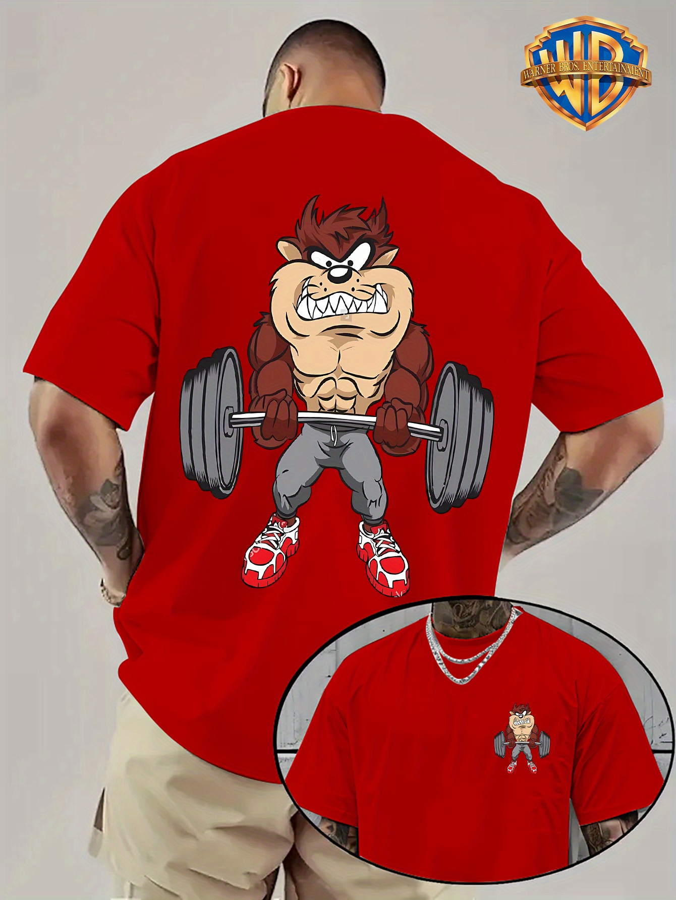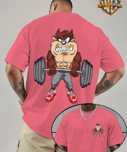 قميص رجالي بطبعة شخصيات كرتونية ريترو – وردي زاهي، طباعة ثنائية الجانب، أكمام قصيرة، رقبة مستديرة، تي شيرت صيفي غير رسمي بتصميم رفع الأثقال، هدية مثالية لأعياد الميلاد والحفلات، مقاس مناسب للجنسين، ملابس الحفلات، تصميم لطيف، ملابس مريحة