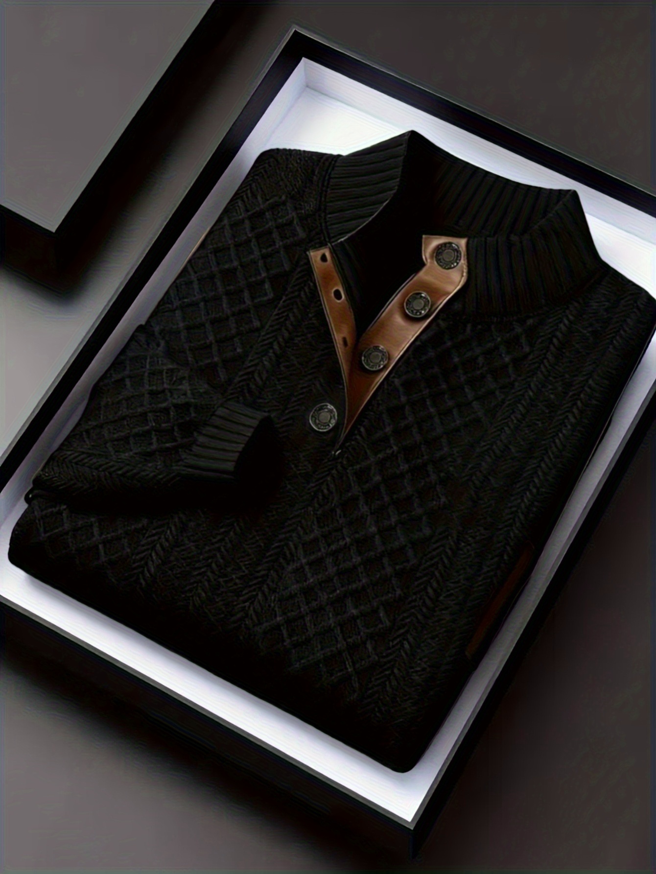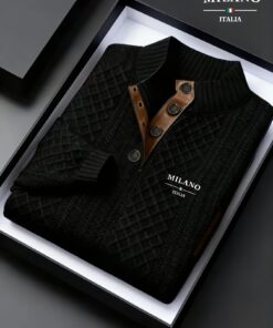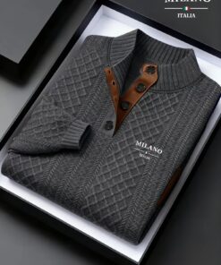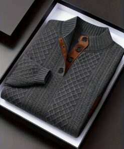 قميص هينلي رجالي خريف-شتاء بياقة واقفة من الكنبة الجاكار | وزن ثقيل 280 جرام/متر مربع، بلوفر عالي الرقبة بتصميم عتيق، لون بلوك بنسيج عشوائي، مناسب للارتداء الخارجي غير الرسمي، هدية مثالية للرجال