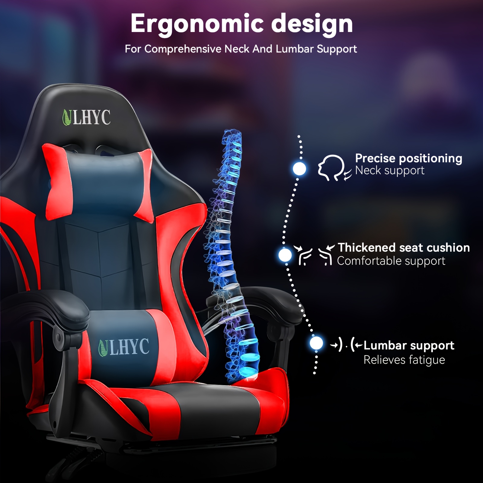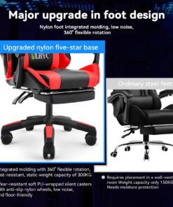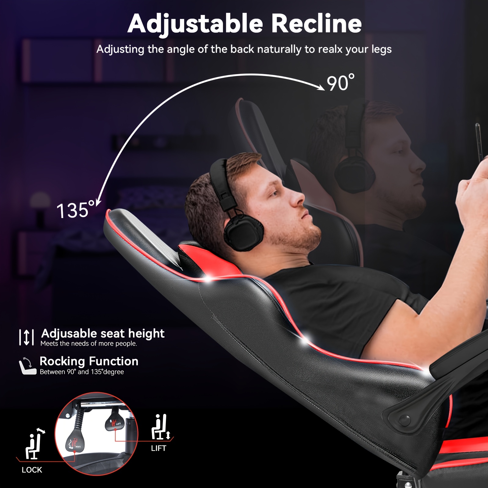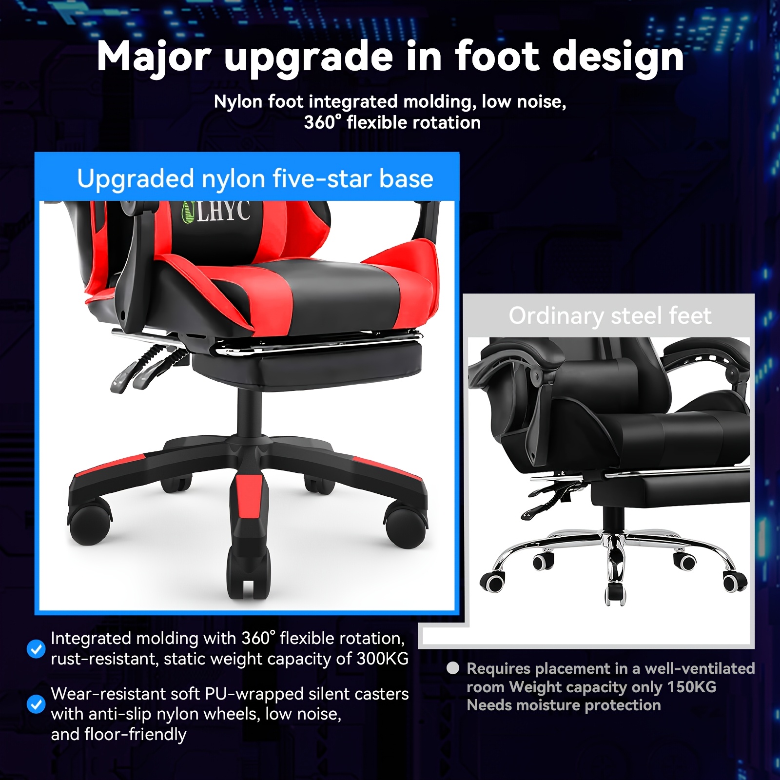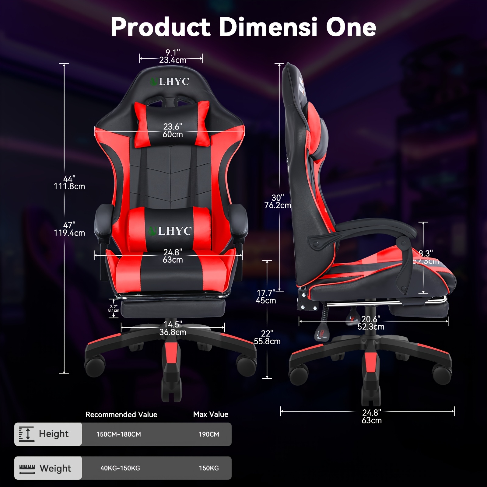 [راحة مريحة] مسند الكرسي يميل من 90° إلى 135°، مسند القدم القابل للسحب يسمح لك بالاسترخاء كما لو كنت نائمًا في السرير، مسند الرأس القابل للإزالة والتعديل [قابلية تعديل شخصية] دوران سلس بزاوية 360° وقابلية تعديل ارتفاع الكرسي، سواء كنت تلعب أو تعمل أو تأخذ قيلولة، فإن مسند الظهر القابل للتعديل سيساعدك على ضبط وضعية جلوسك طوال الاستخدام [مسند قدم قابل للسحب] استمتع بأقصى درجات الاسترخاء مع مسند القدم القابل للسحب، الذي يوفر لساقيك دعمًا إضافيًا وراحة أثناء الاستخدام الممتد. [إطار فولاذي داخلي معزز] تم تصميم الكرسي ليدوم طويلاً، باستخدام إطار فولاذي داخلي مُثخن لتوفير دعم قوي. قاعدة العجلات المضادة للانقلاب تجعل الكرسي مستقرًا للغاية، مما يضمن استقرارًا وموثوقية طويلة الأمدقاعدة متينة وعجلات سلسة: تأتي الكرسي بقاعدة متينة وعجلات دوارة سلسة يمكن تحريكها بسهولة دون خدش سطح الأرضية. استخدام متعدد الاستخدامات: مثالي للألعاب أو العمل أو الاسترخاء، حيث يوفر مقعدًا مريحًا وداعمًا لاحتياجات مختلفة. سيجعل مساحتك أكثر عصرية وأناقة