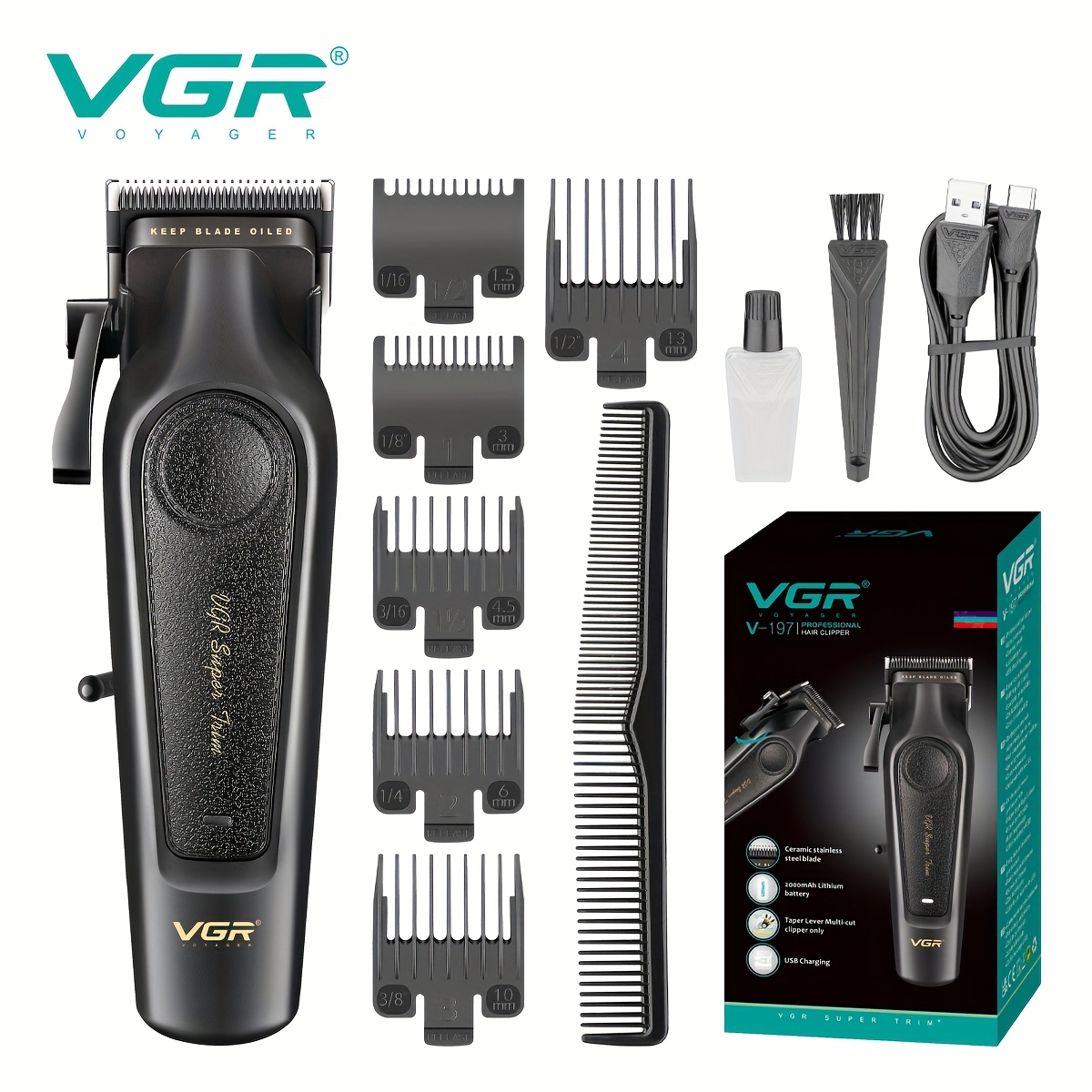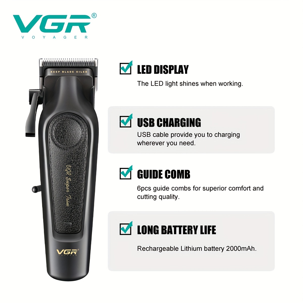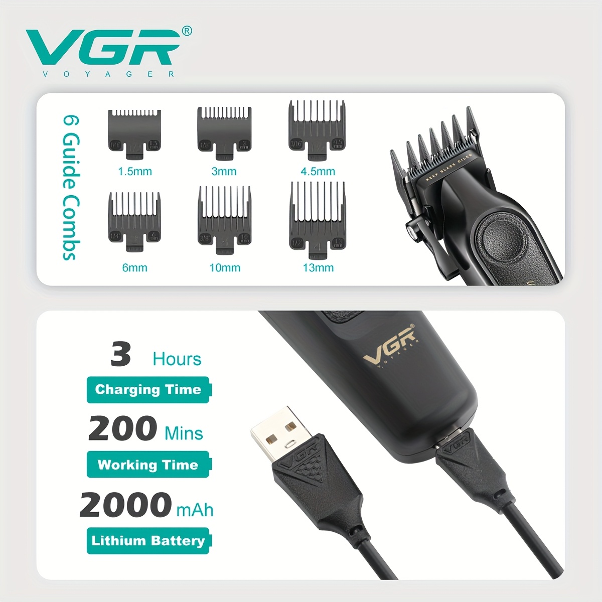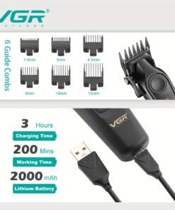 ماكينة حلاقة VGR الاحترافية للرجال، ماكينة تشذيب الشعر الكهربائية القابلة لإعادة الشحن عبر USB – مثالية لتصفيف اللحية والشوارب – الهدية المثالية للرجال