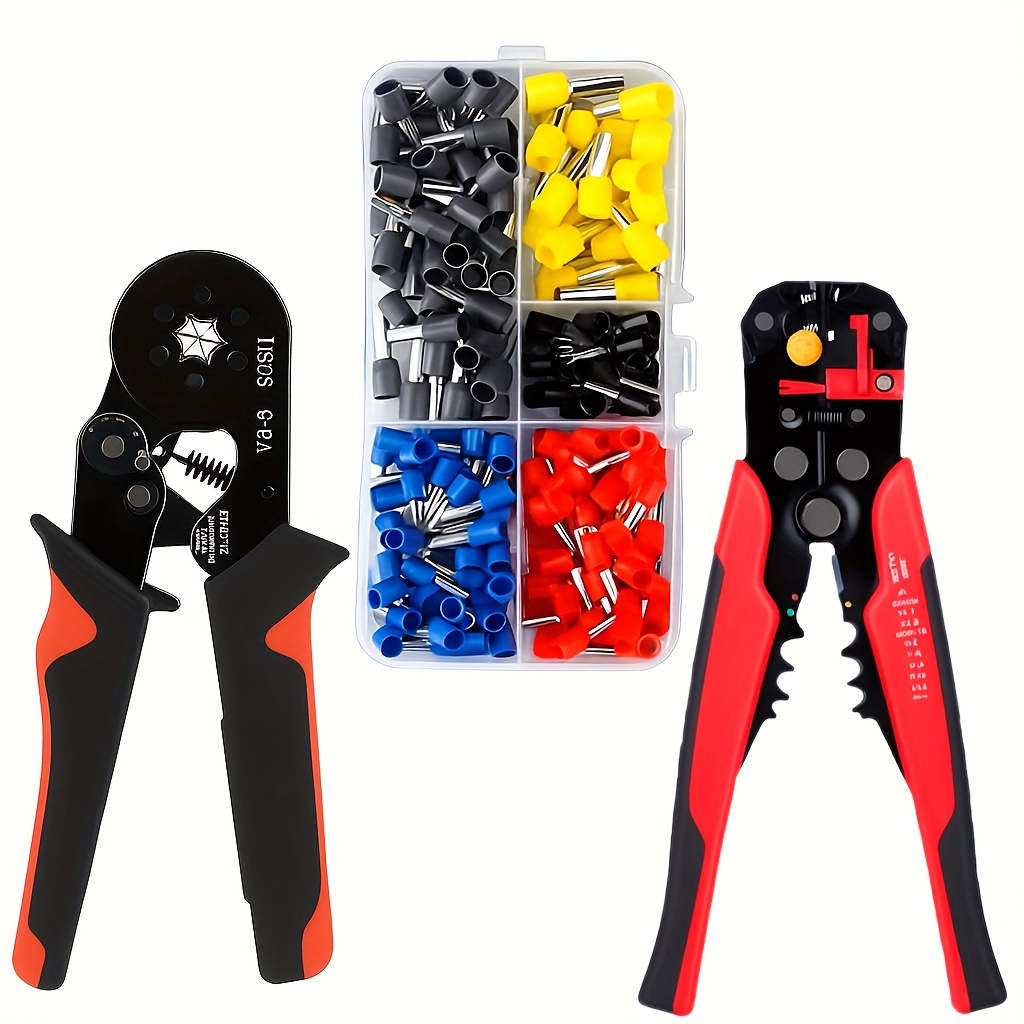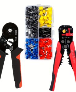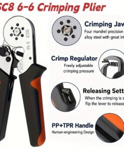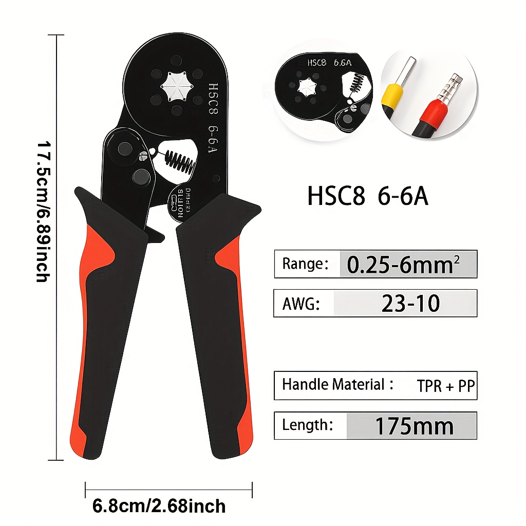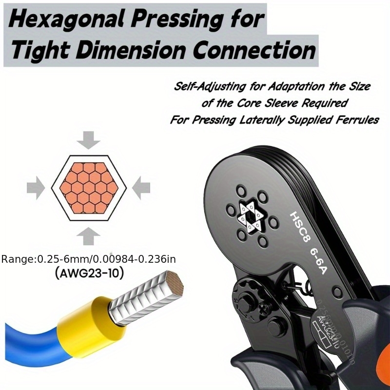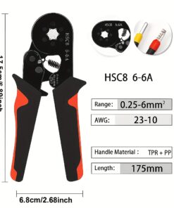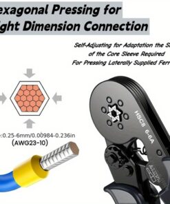 مجموعة أدوات تجعيد أوتوماتيكية ثقيلة مع مقشرة سلك وموصلات – HSC8 6-6A AWG 23-10 Gauge، مكبس كهربائي سداسي لأعمال DIY والسيارات والأسلاك – مشبك مقشر سلك قابل للتعديل، مجموعة طرفية بدون براغي (احترافي/سكني)