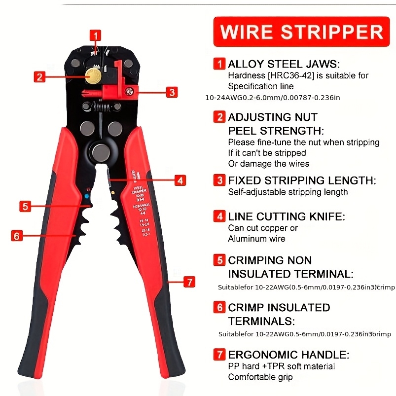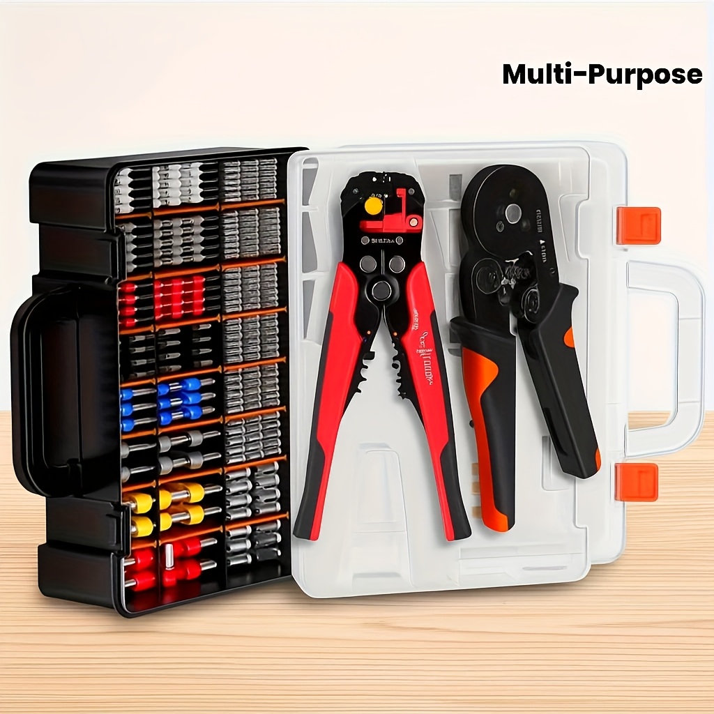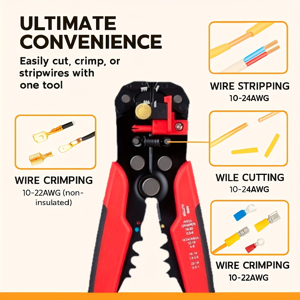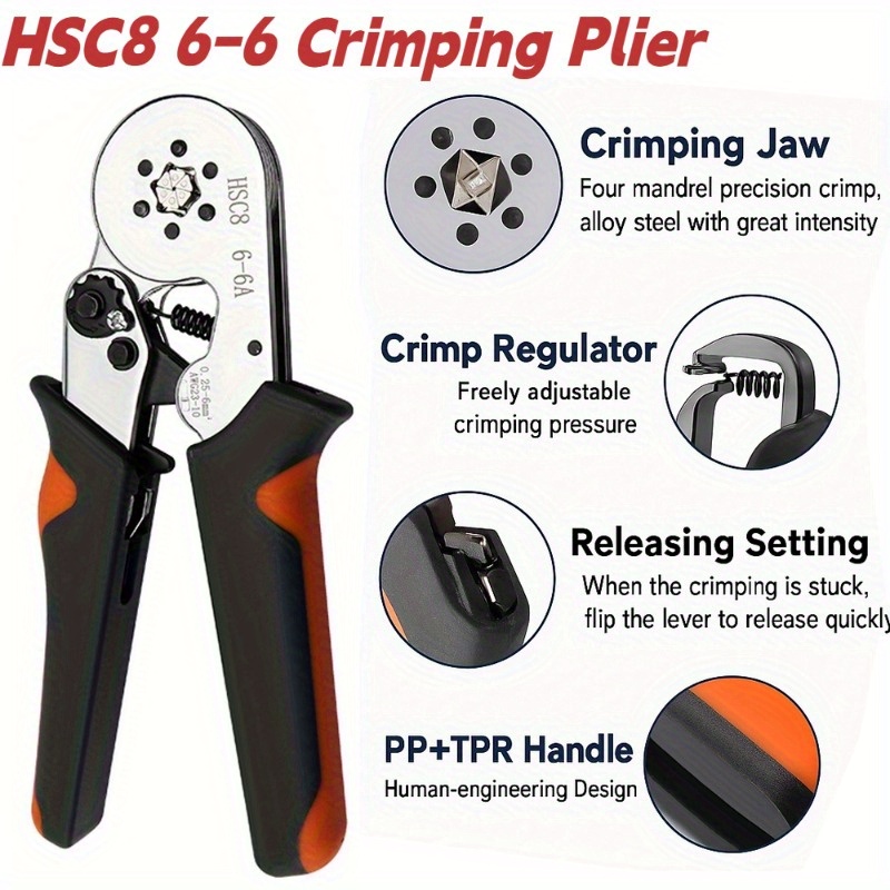 مجموعة أدوات تجعيد أوتوماتيكية ثقيلة مع مقشرة سلك وموصلات – HSC8 6-6A AWG 23-10 Gauge، مكبس كهربائي سداسي لأعمال DIY والسيارات والأسلاك – مشبك مقشر سلك قابل للتعديل، مجموعة طرفية بدون براغي (احترافي/سكني)
