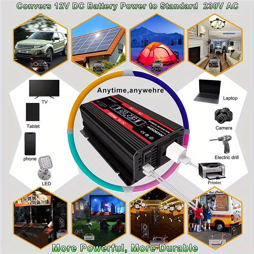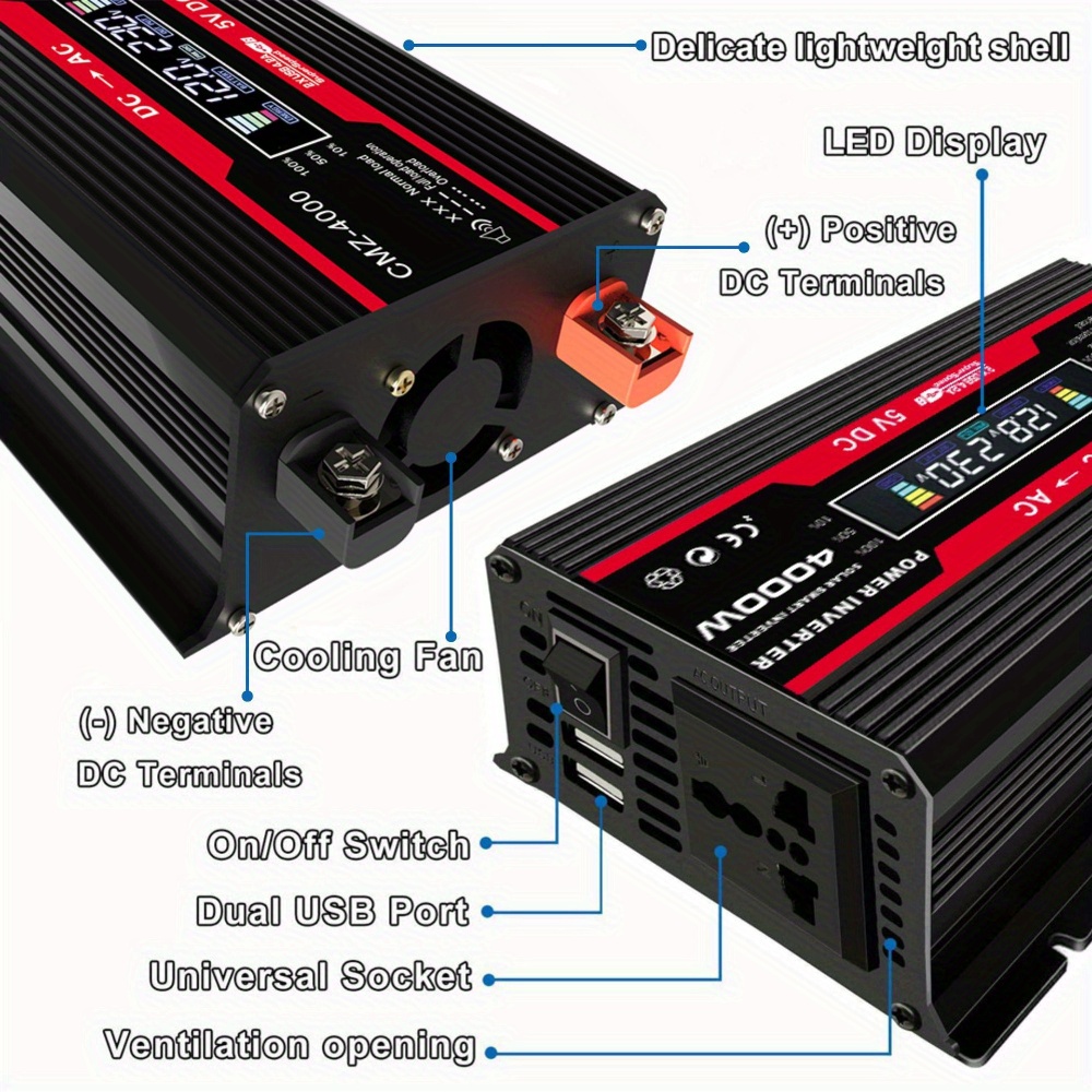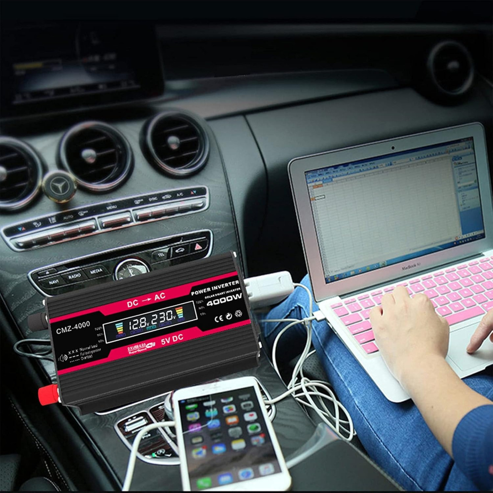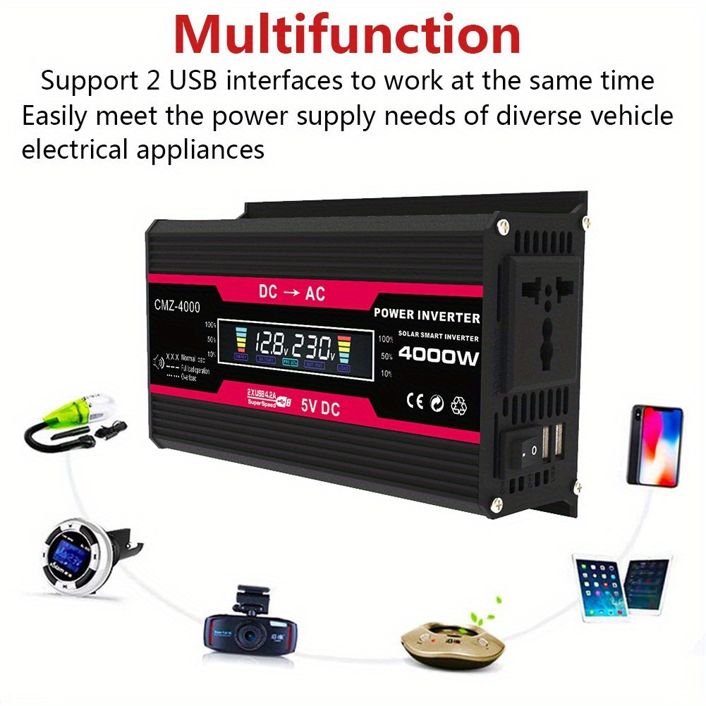 3. [شحن سريع] يتميز محول طاقة السيارة بمنفذي USB ومقابس تيار متردد. يسمح منافذ USB بالشحن المتزامن للهواتف والأجهزة اللوحية، في حين أن المقابس الكهربائية المترددية مثالية لأجهزة الكمبيوتر المحمولة، ووحدات تحكم الألعاب، وأجهزة Kindle، وأجهزة التلفزيون، وأجهزة DVD، والأضواء، والمركبات الترفيهية، وغيرها من الأجهزة الإلكترونية المختلفة.