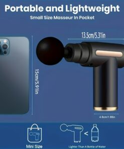 مسدس تدليك محمول قابل للشحن: 6 سرعات قابلة للتعديل، مناسب لاسترخاء الجسم والرقبة، تصميم مدمج وأنيق