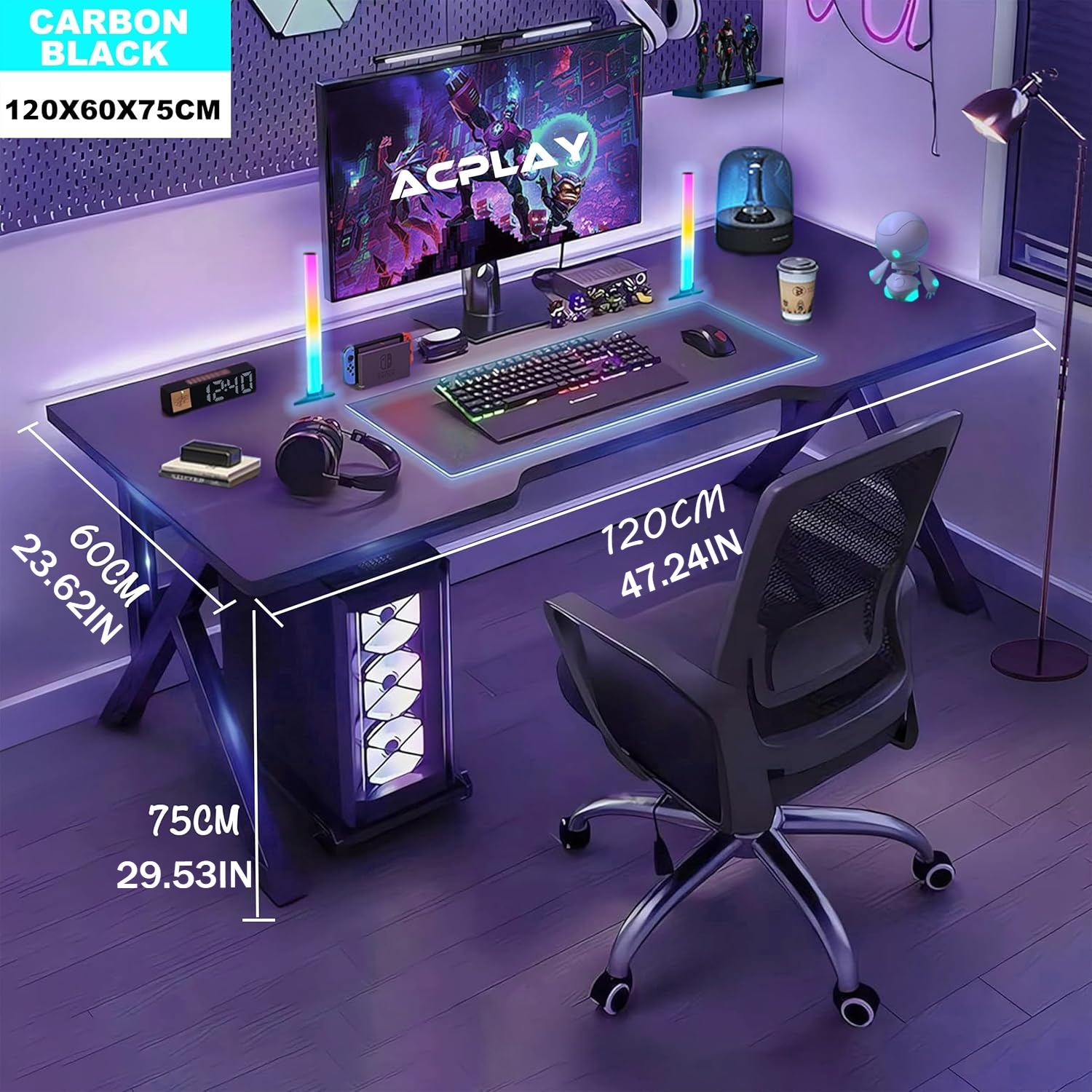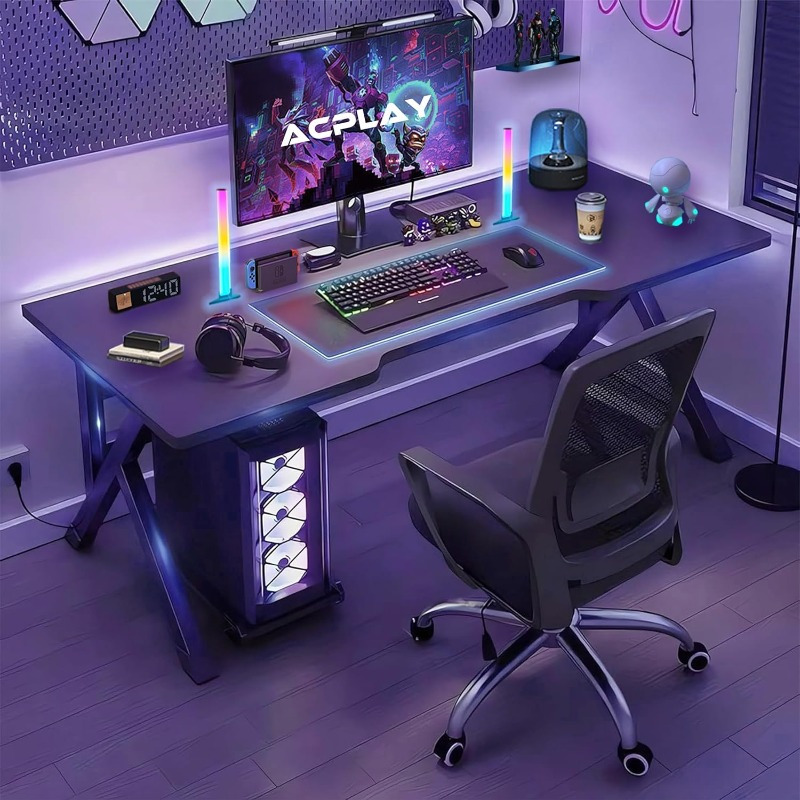 مكتب كمبيوتر ألعاب، مكتب مكتبي للمنزل والدراسة، حل متعدد الاستخدامات للعبة الحديثة، مثالي للطلاب واللاعبين، واسع وعملي