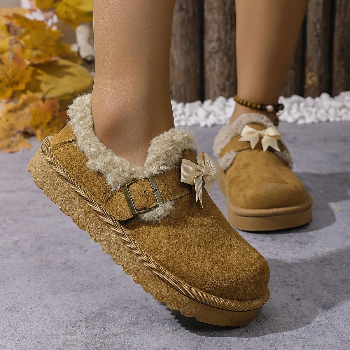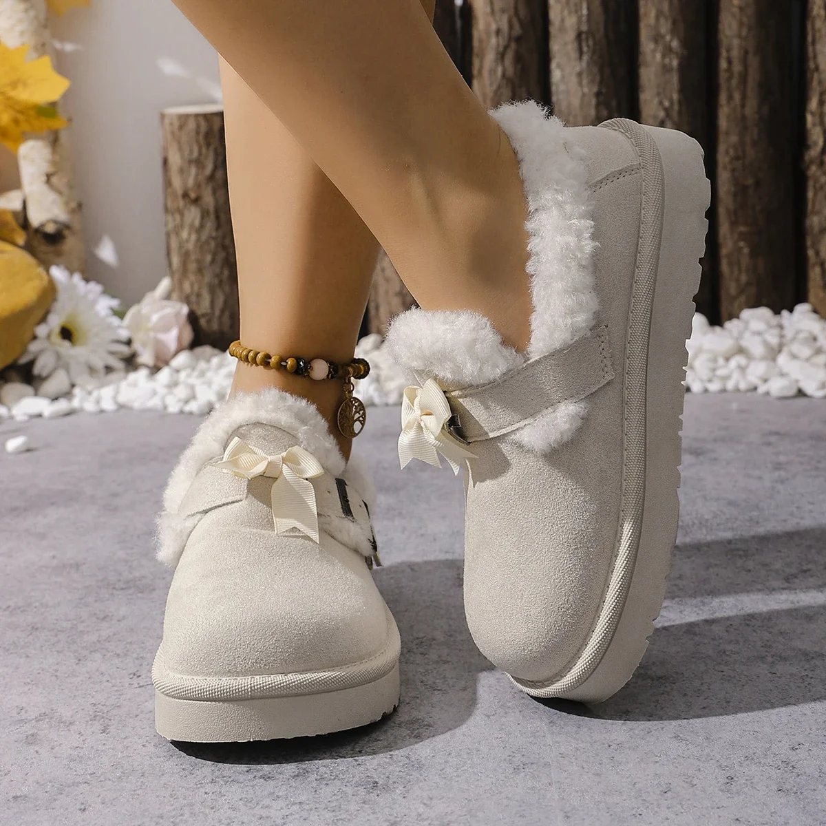 موضة جديدة ضوء الفم الجلد المدبوغ أحذية الثلوج غير رسمية الشتاء جولة تو مريحة القوس مثير سميكة وحيد أحذية المشي للنساء