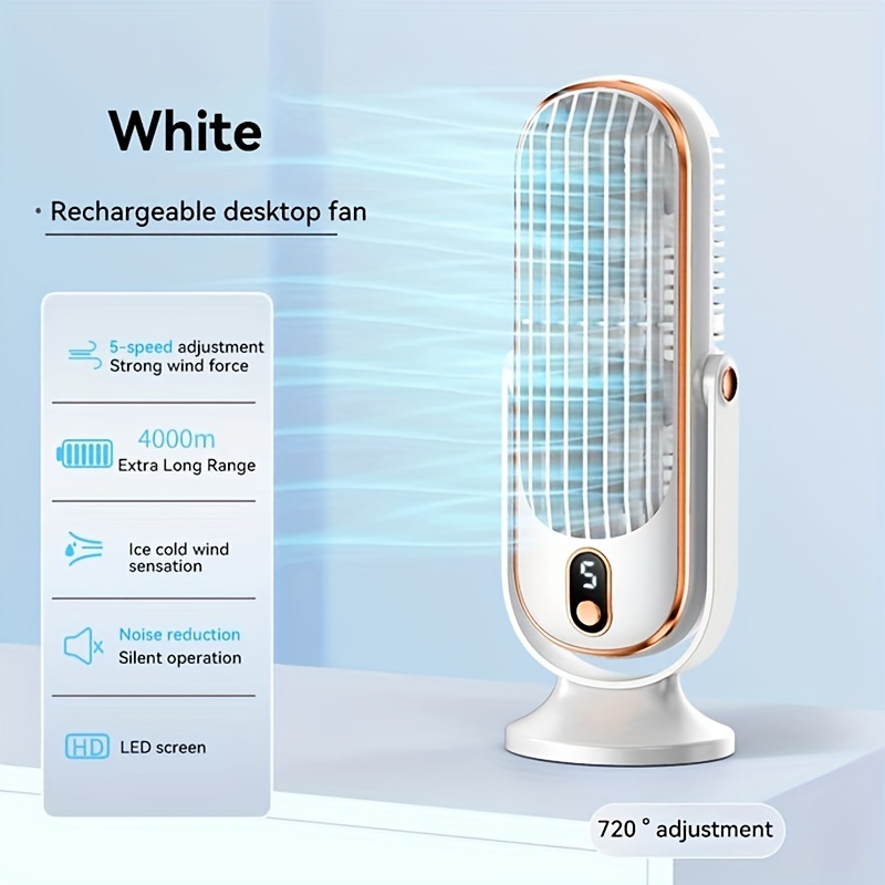 يأتي مروحة التبريد هذه بميزة الشحن عبر USB وتوفر خمس سرعات مختلفة، مما يتيح لك تخصيص تجربة التبريد الخاصة بك لتناسب احتياجاتك. استمتع بأجواء مريحة مع المستوى المثالي من الهواء البارد.