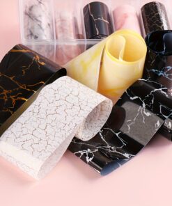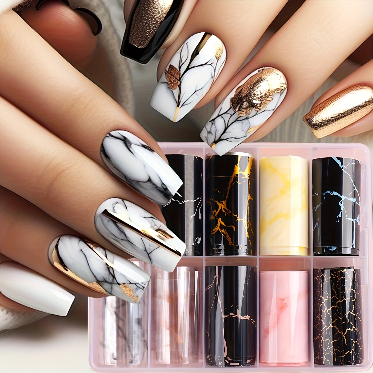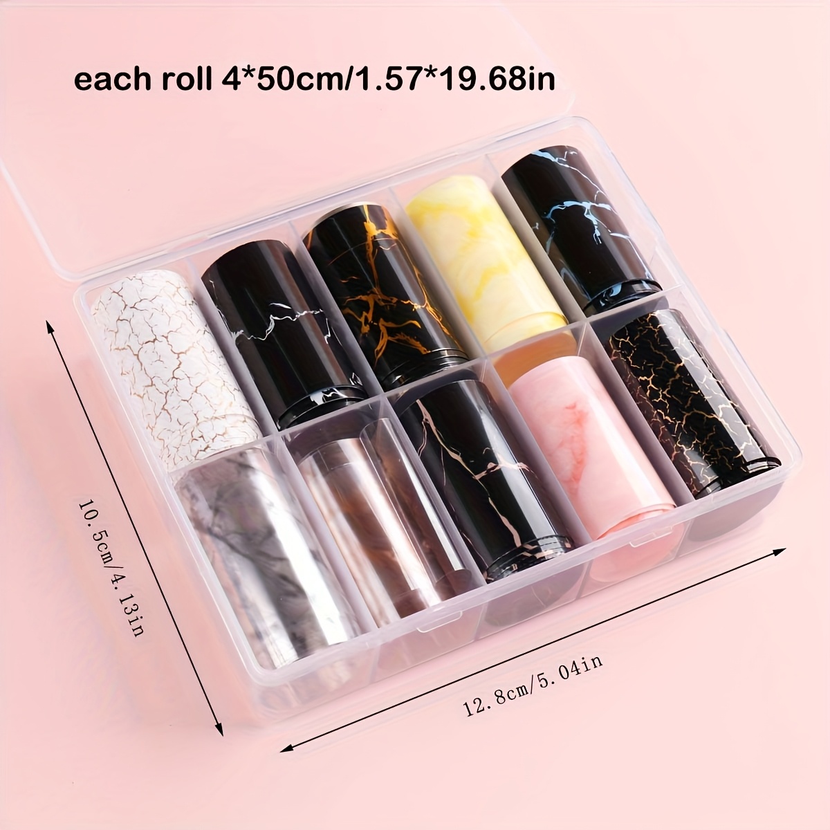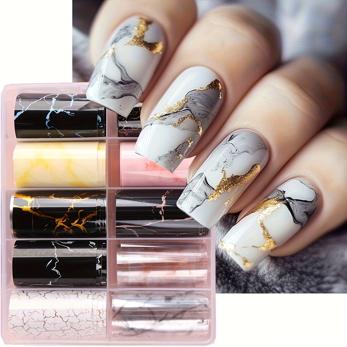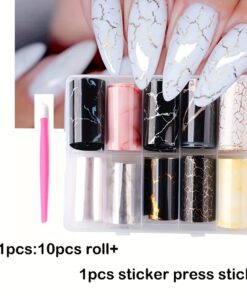 11 قطعة ملصقات نقل رقائق الأظافر بتصميم سماء مرصعة بالنجوم الخيالية – تتضمن 10 لفات من رقائق الأظافر + 1 عصا ضغط، ملصقات فنية للأظافر بتصميم ريترو من الرخام للعناية بالأظافر، إكسسوارات أظافر نسائية، لفة واحدة (4*50 سم/1.57*19.68 بوصة)