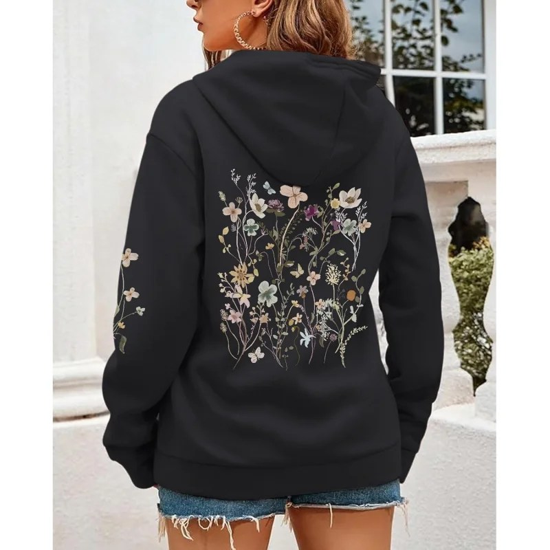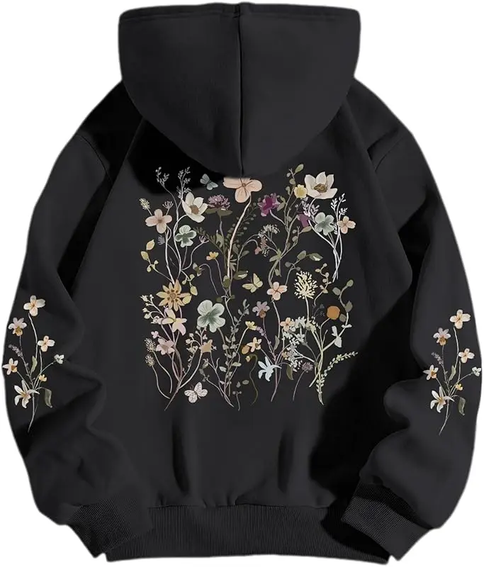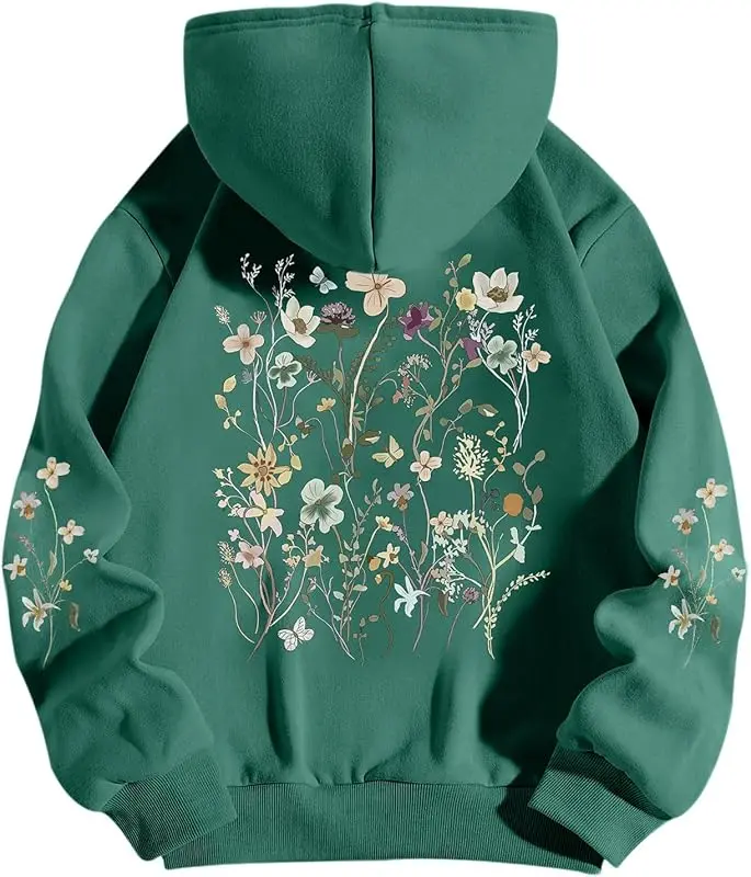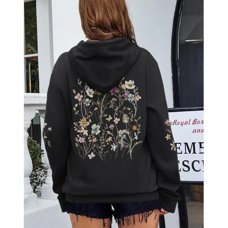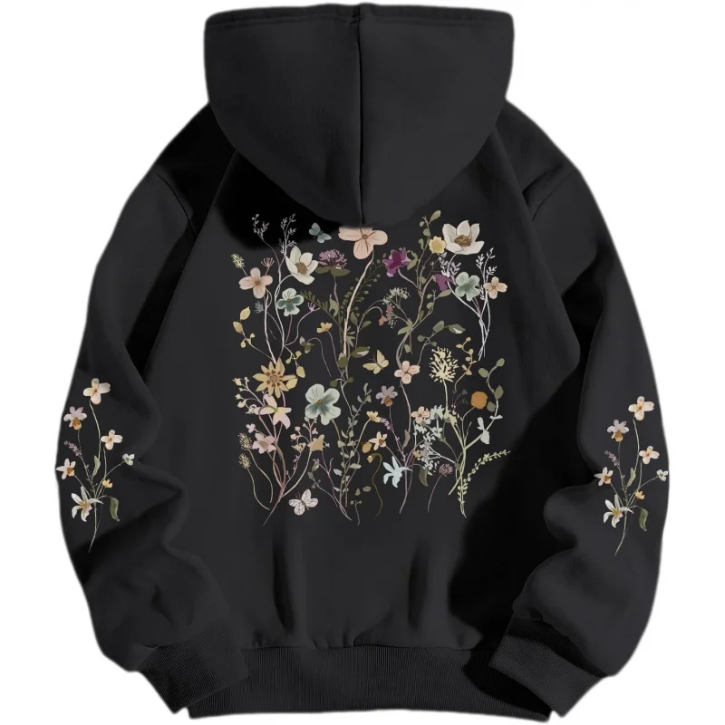 سويت شيرت بقلنسوة مطبوع على الموضة لعام 2025 Y2K بلوفر بأكمام طويلة متعدد الاستخدامات