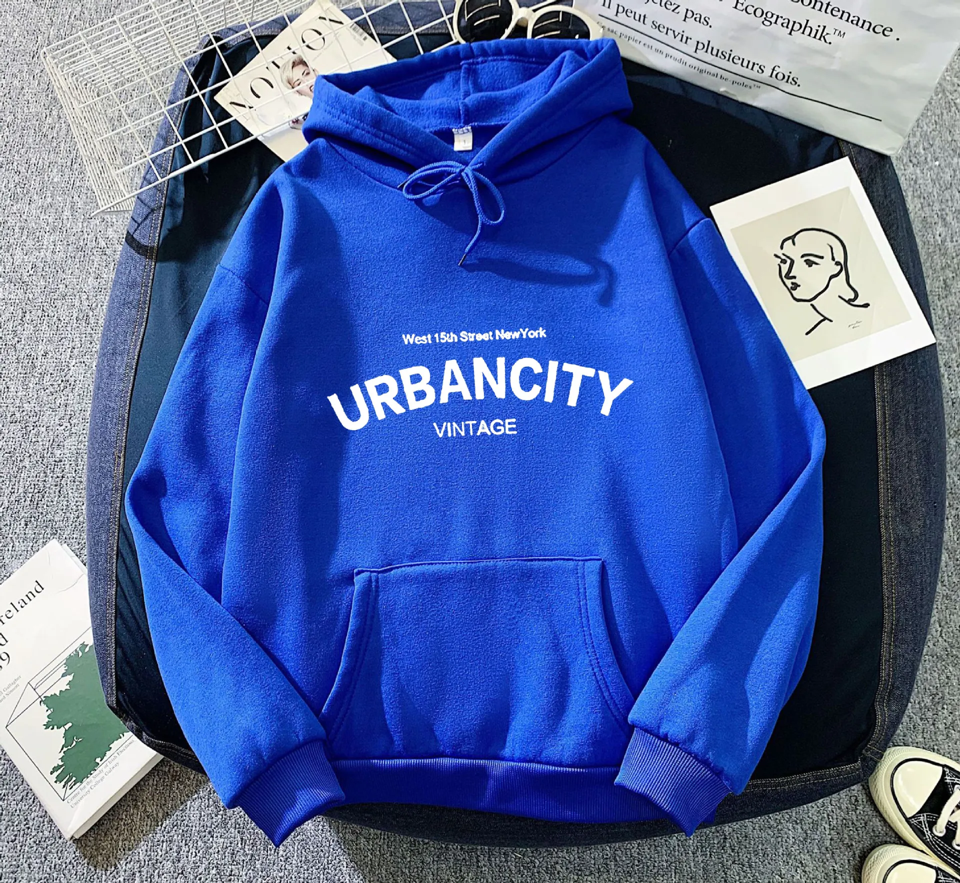 الخريف والشتاء فضفاض المرأة هوديي عبر الحدود الساخن بيع بروكلين طباعة زوجين البلوز كل مباراة البلوز