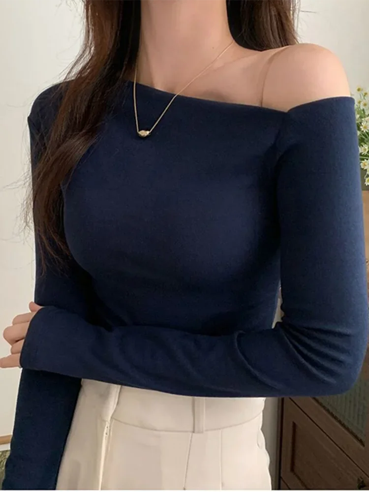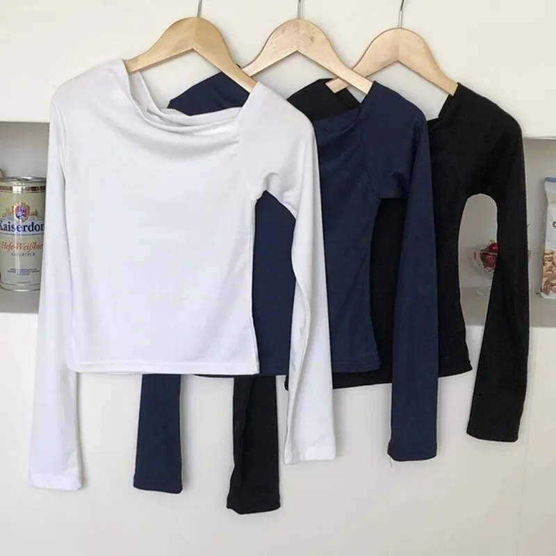 AOSSVIAO 2025 تي شيرت المرأة كم طويل قبالة الكتف Y2k بلايز خمر الشارع الشهير الكورية نمط المحاصيل القمم الخريف تي شيرت