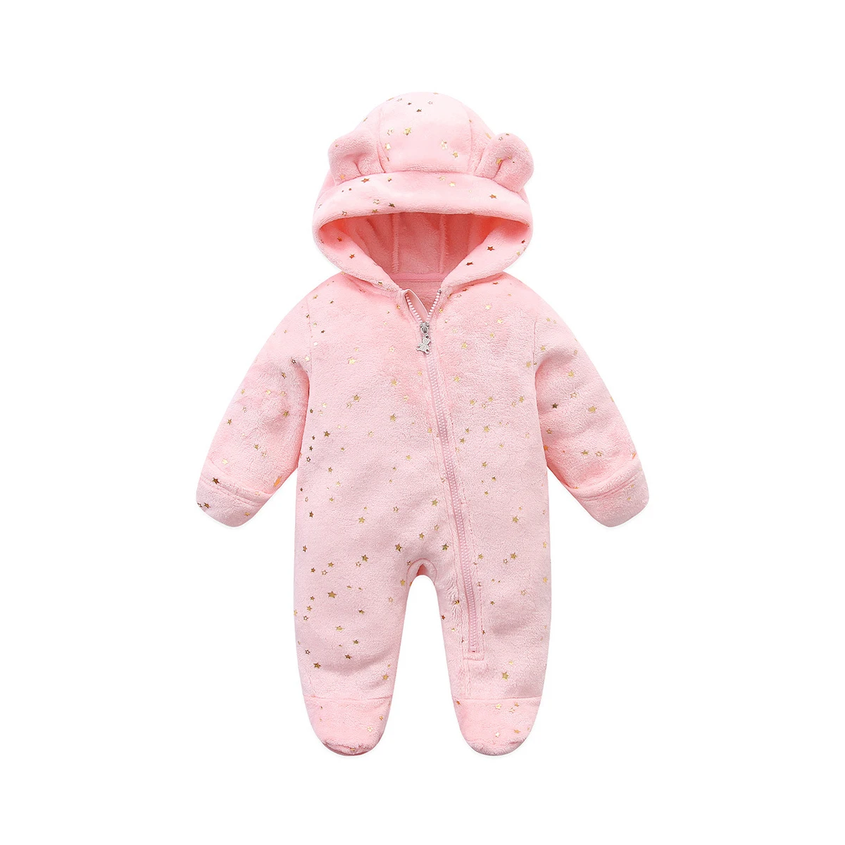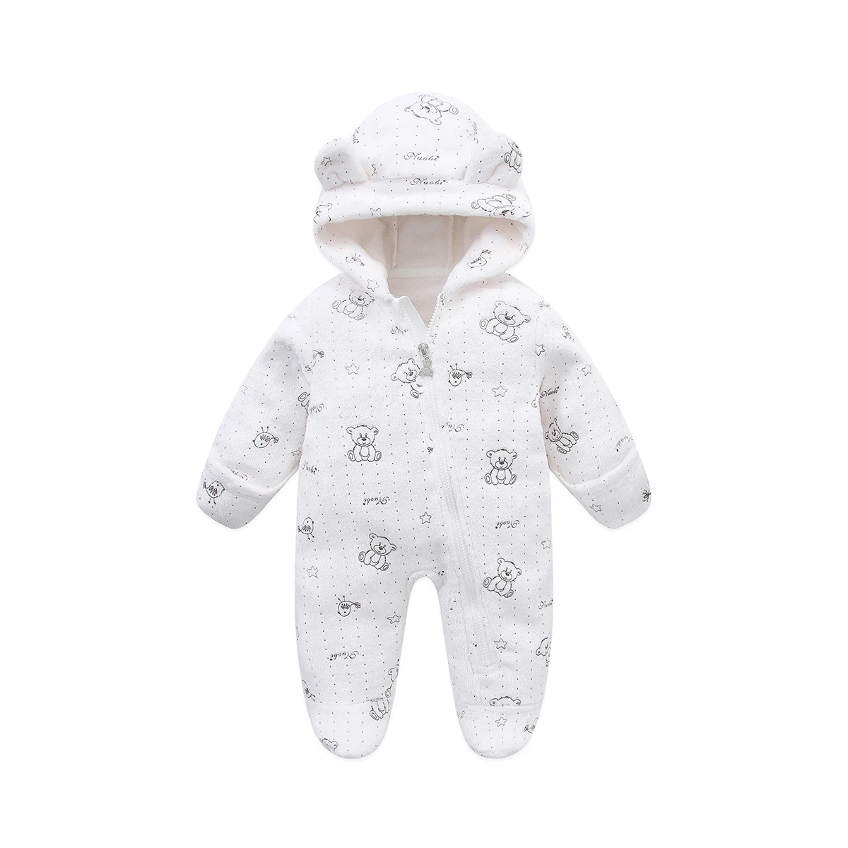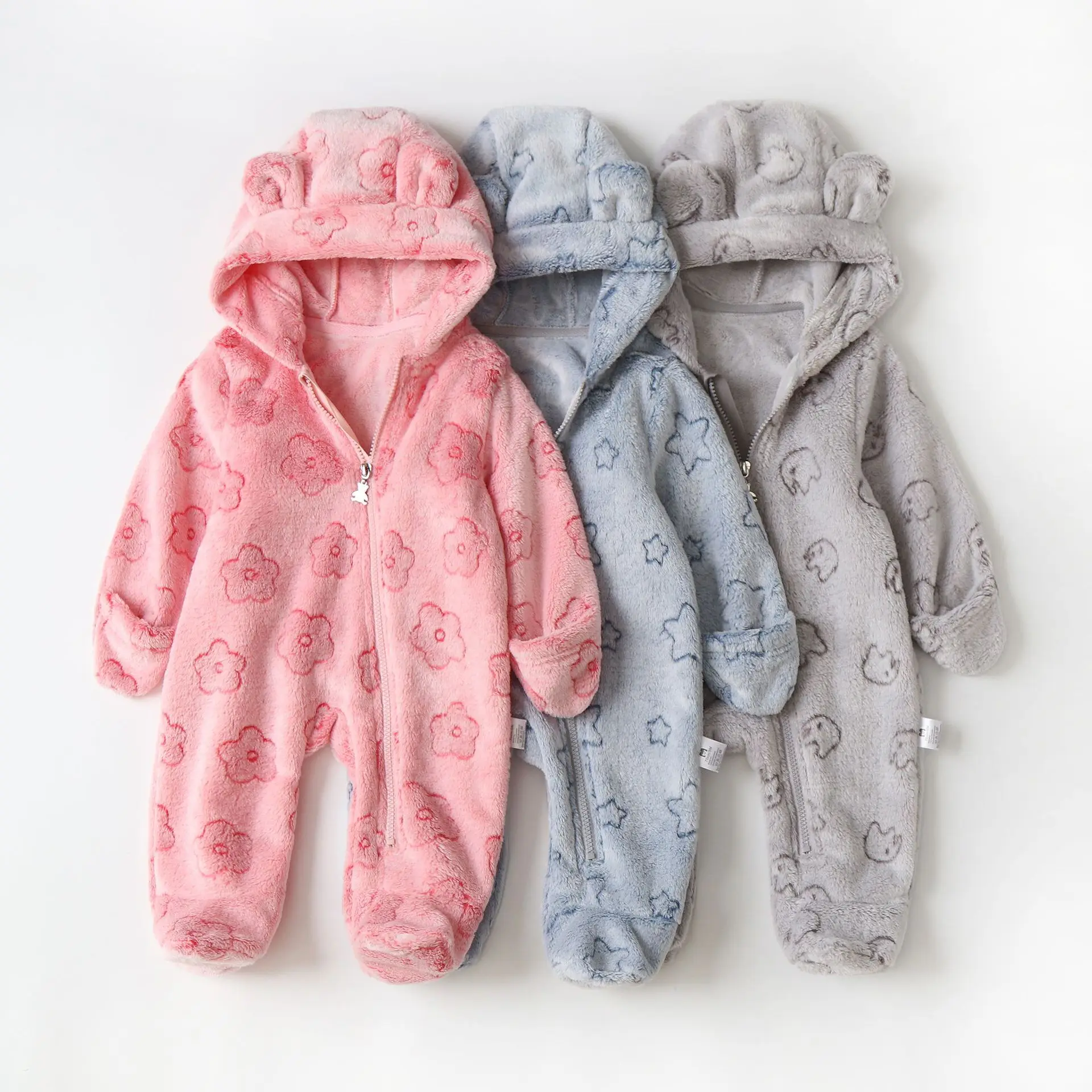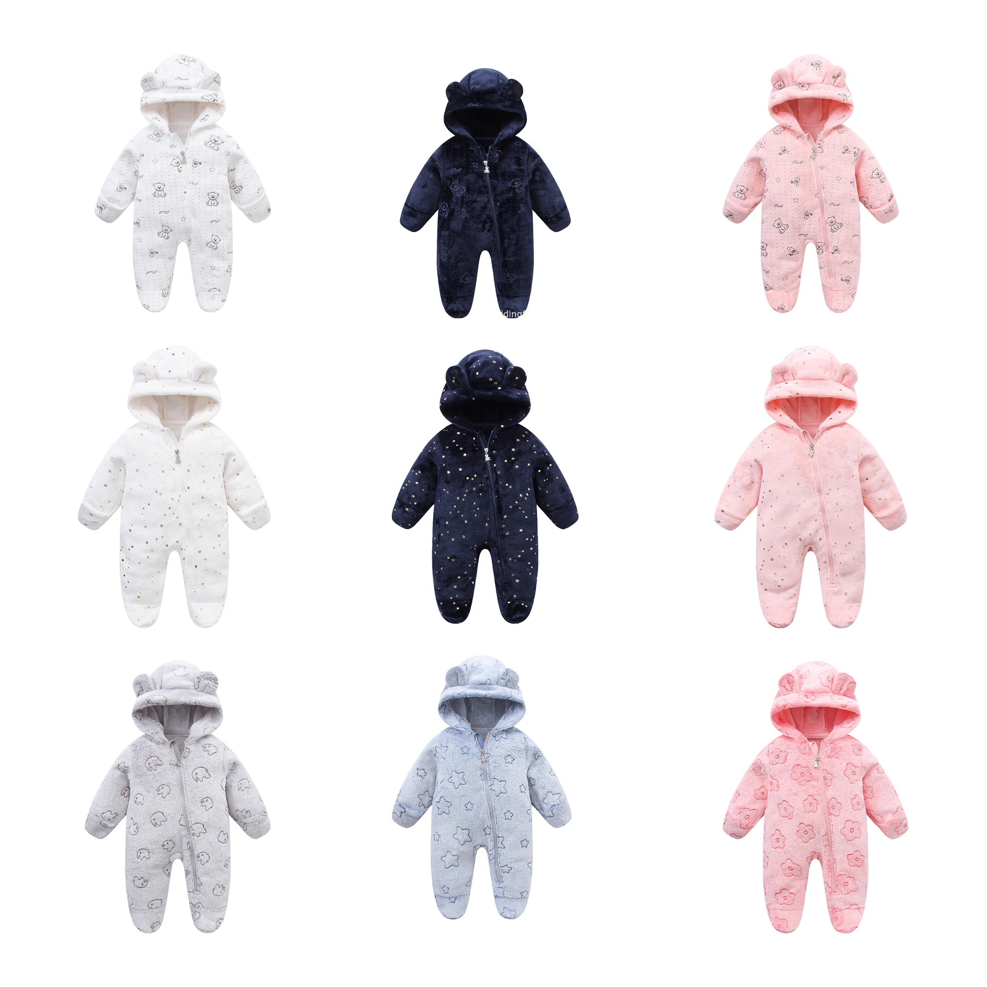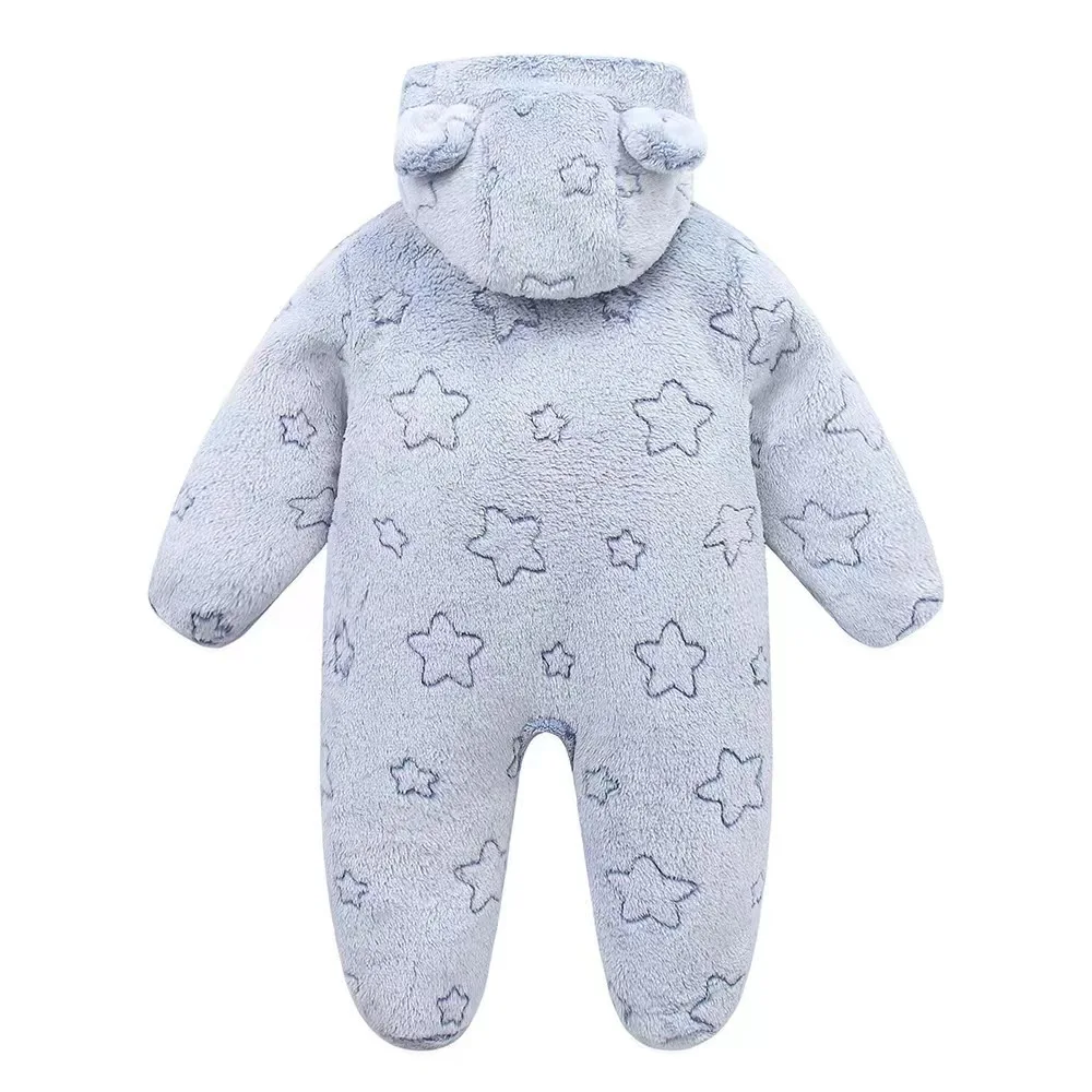 AYNIGIELL ملابس الخريف/الشتاء للأطفال الصغار، رومبير بقلنسوة دافئ للأطفال، بدلة قفز كرتونية للأطفال حديثي الولادة من الفلانيل