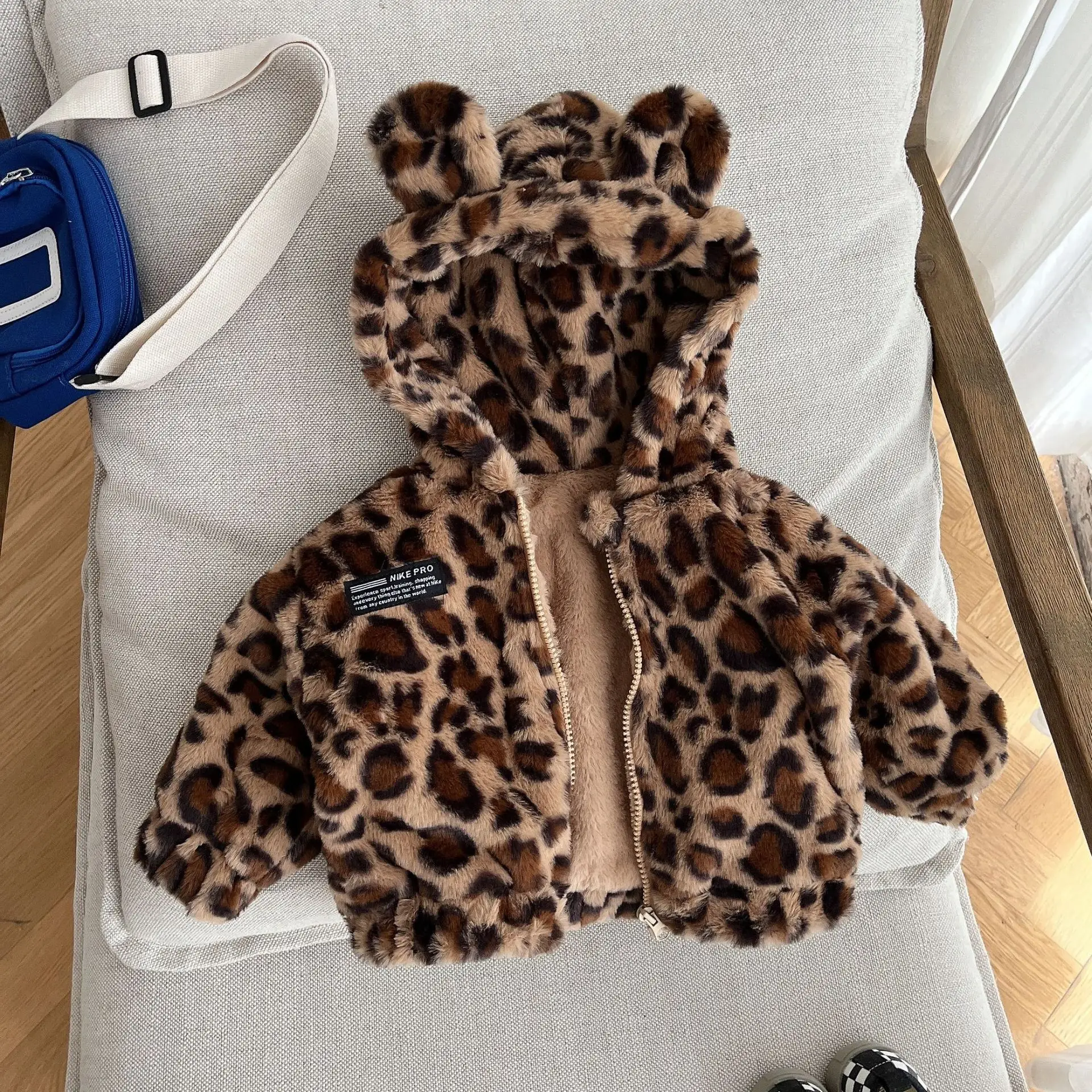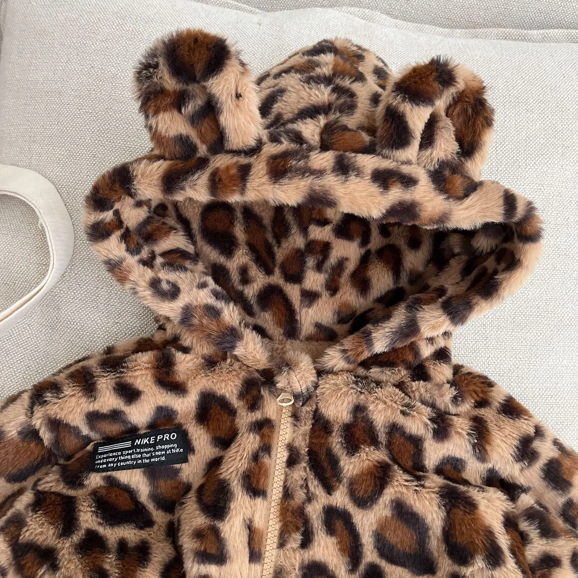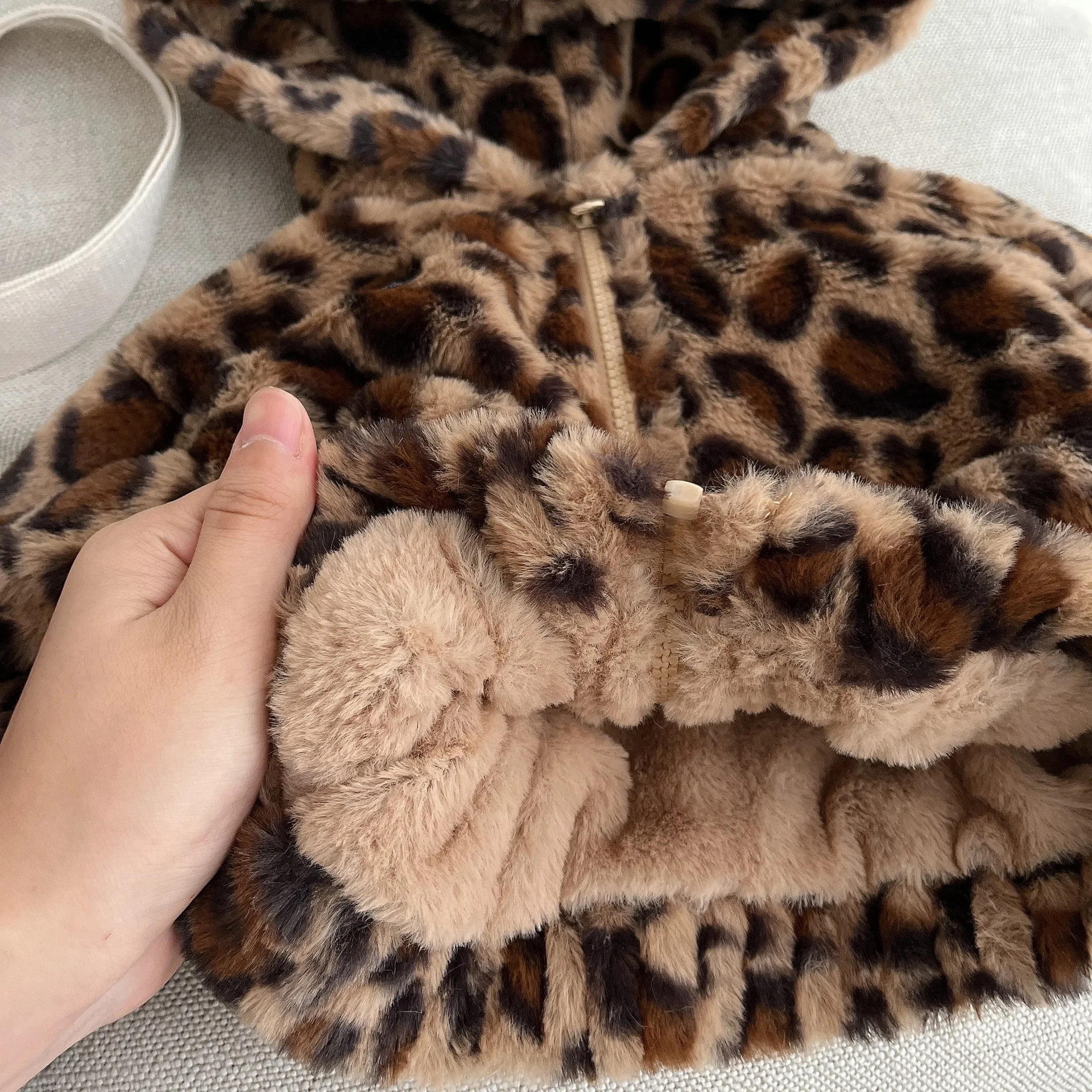 Ayniniell-الفتيات ليوبارد طباعة بأكمام طويلة مقنعين سترة ، أفخم معطف ، عادية ، الدافئة ، الكورية الموضة ، الخريف ، الشتاء