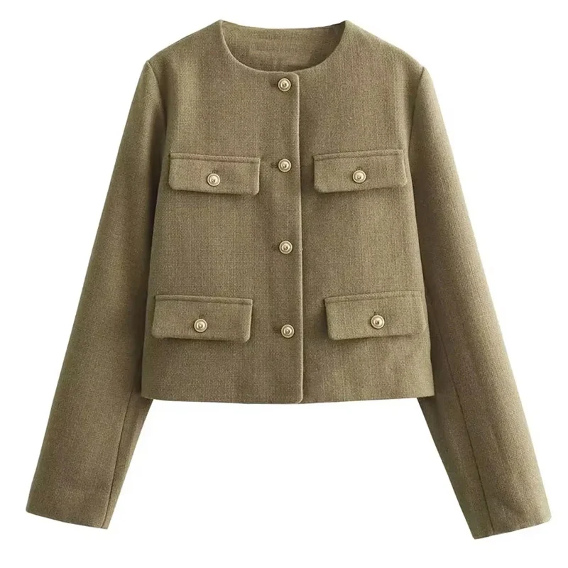 سترة نسائية لخريف وشتاء 2025 معطف تويد من الصوف موضة الراقية بزر ذهبي معاطف كورية قصيرة بمزاج نحيف