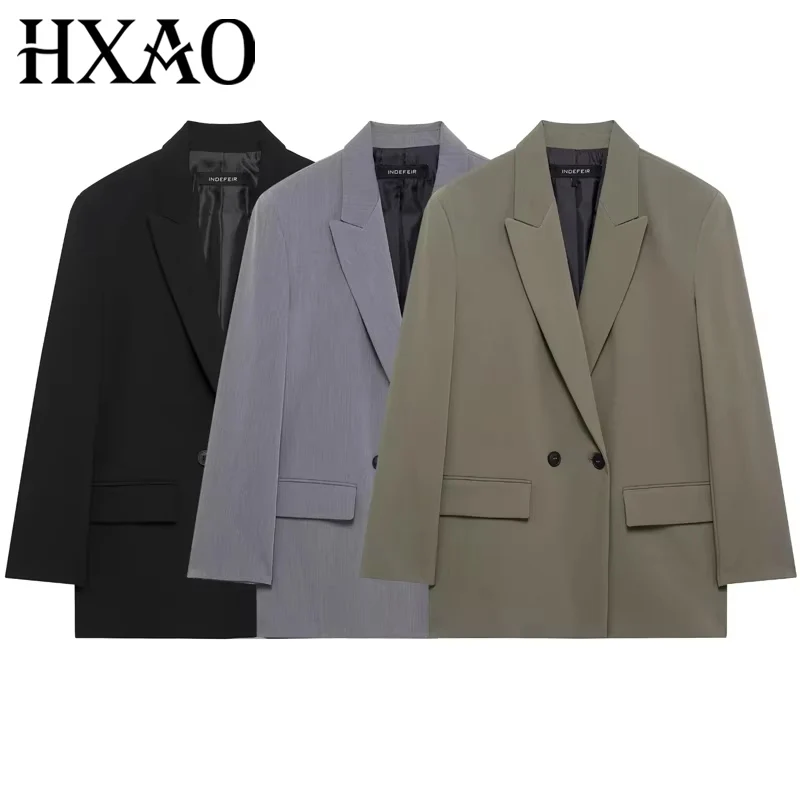 سترة منفوخة مقصوصة من HXAO للنساء سترات طيار ملابس خارجية معاطف من الصوف والخريف والشتاء سترة تويد