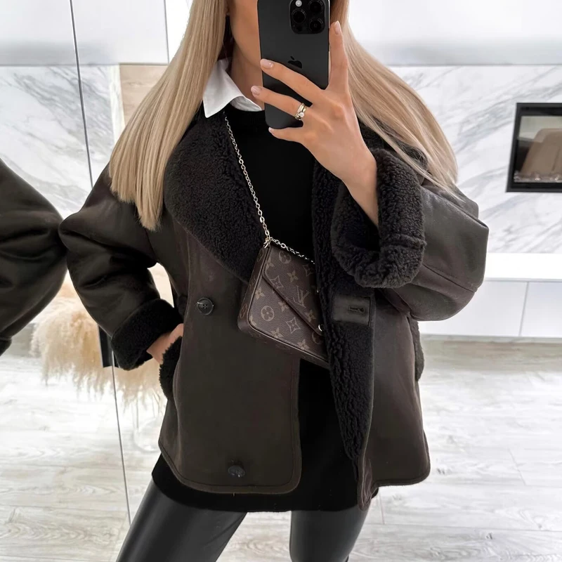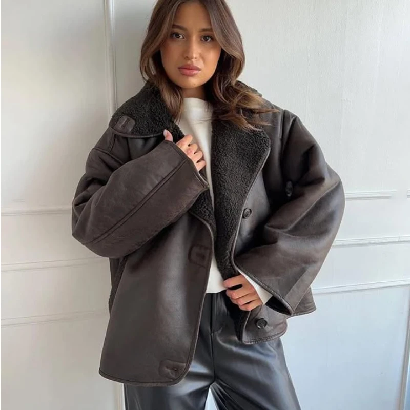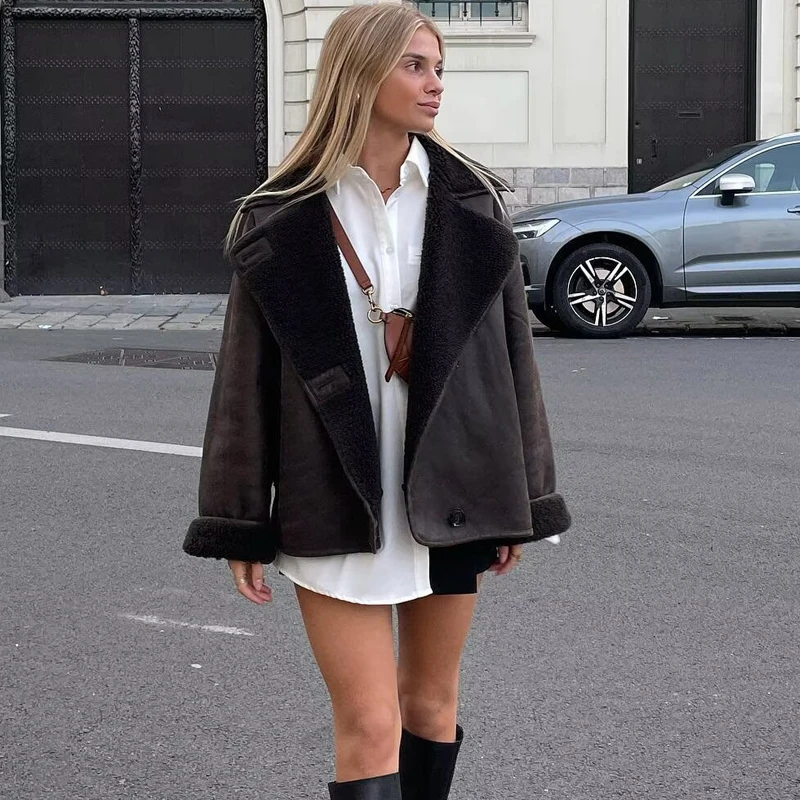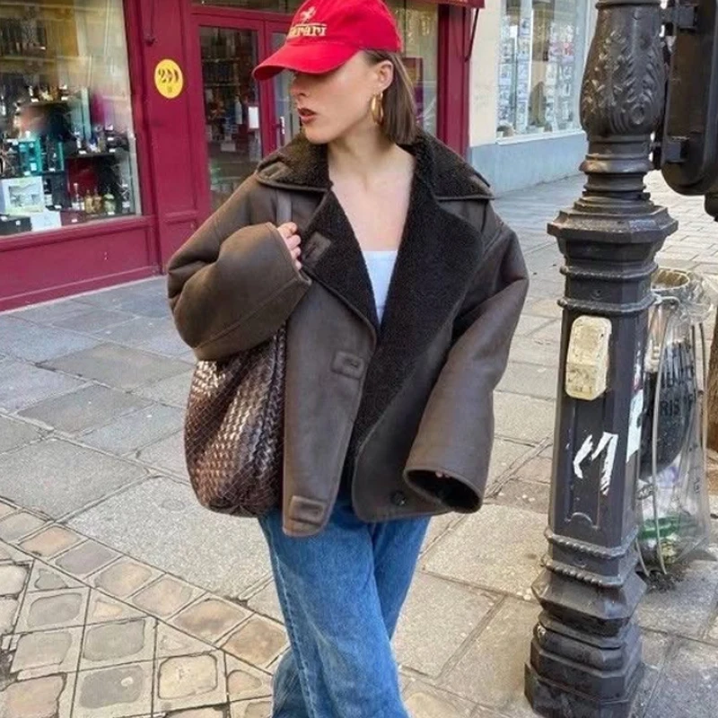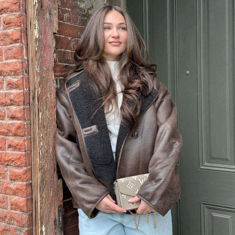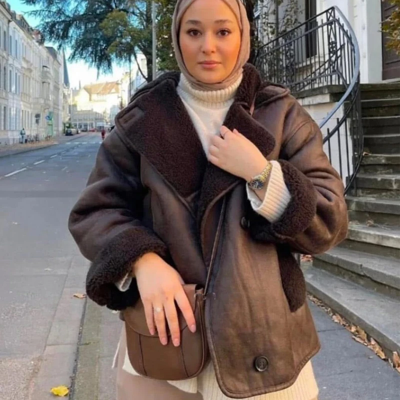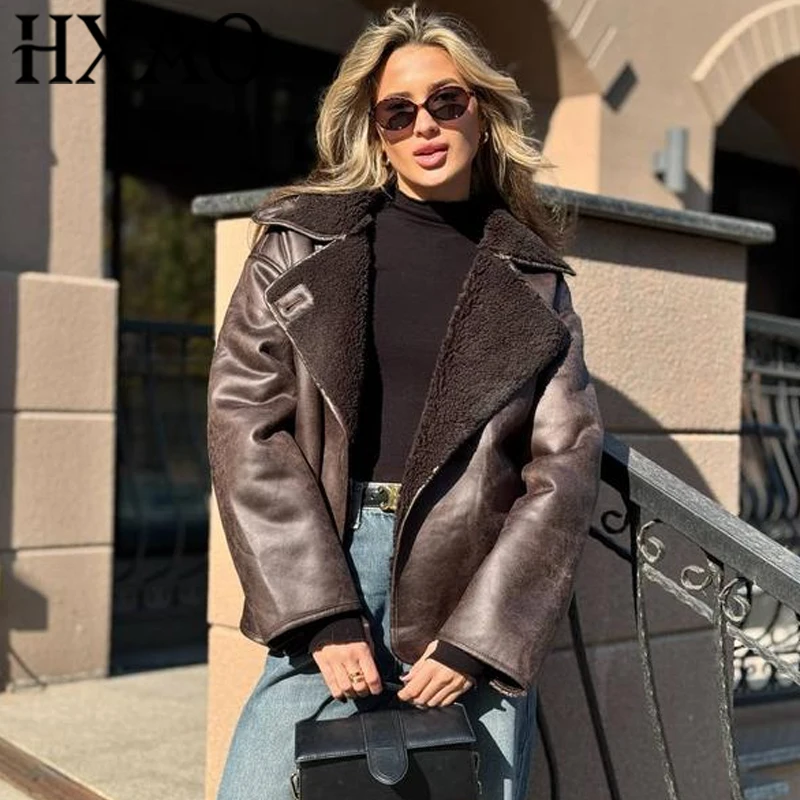 سترة منفوخة مقصوصة من HXAO للنساء سترات طيار ملابس خارجية معاطف من الصوف والخريف والشتاء سترة تويد