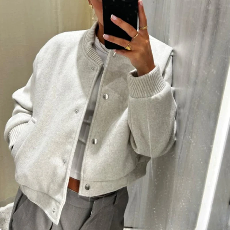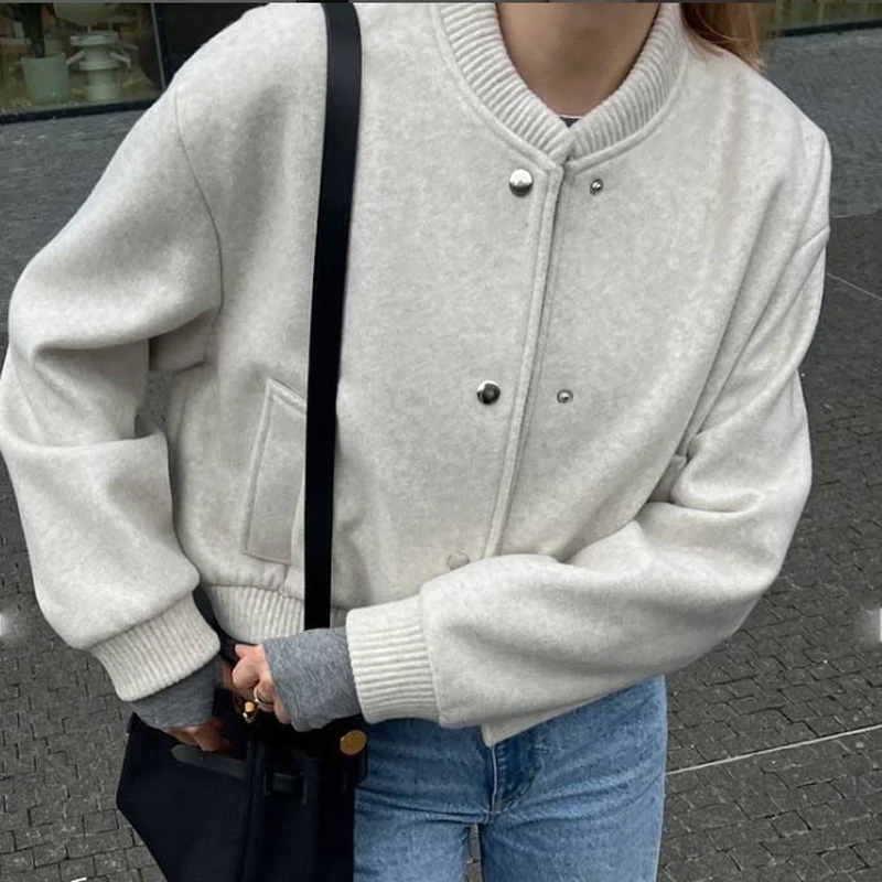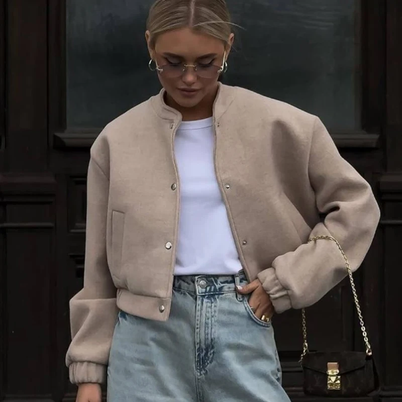 سترة منفوخة مقصوصة من HXAO للنساء سترات طيار ملابس خارجية معاطف من الصوف والخريف والشتاء سترة تويد