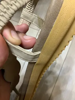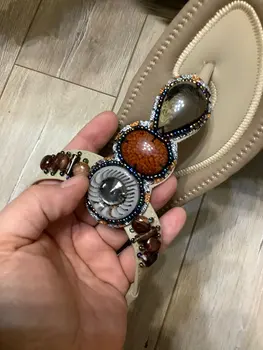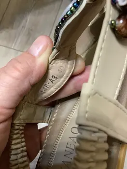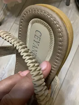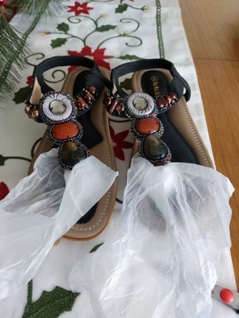 Shoes look great on the leg. Stones beautifully decorate the leg in shoes. The photo does not convey the beauty of the stones. The drawback is cheap artificial leather, although soft, for the season is enough, the fastening of the straps should be stitched immediately, so as not to tear off when worn. Sit comfortably. At me the size 39,5 I took 9 (40 size), but it turned out to be small. We have to take 10.